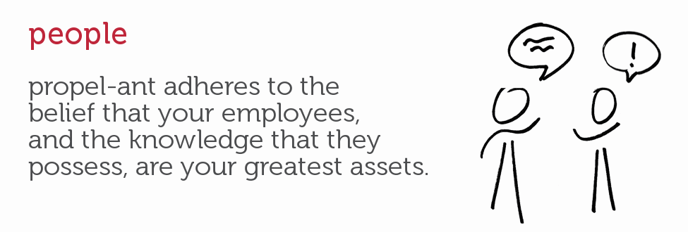 Unfortunately, much of their knowledge may never reach the employees who can use it to shape your corporate strategy and to grow your business. That knowledge must be captured at the right place and time…or it may be gone for good. propel-ant’s people oriented solutions are designed to maximize the effectiveness of your marketing and sales initiatives. Internally, we draw market specific knowledge out of your specialists and distill it into actionable lessons to be disseminated company-wide. Externally, we empower your client-facing teams to succeed with a marketing and communications platform that ensures that your entire company is on-message and in possession of the tools that they need to expand your sales.